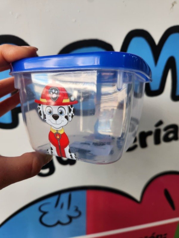 • 3 mini tuppers, cada uno con distitnas estampas de personajes, con distintos colores de tapas.