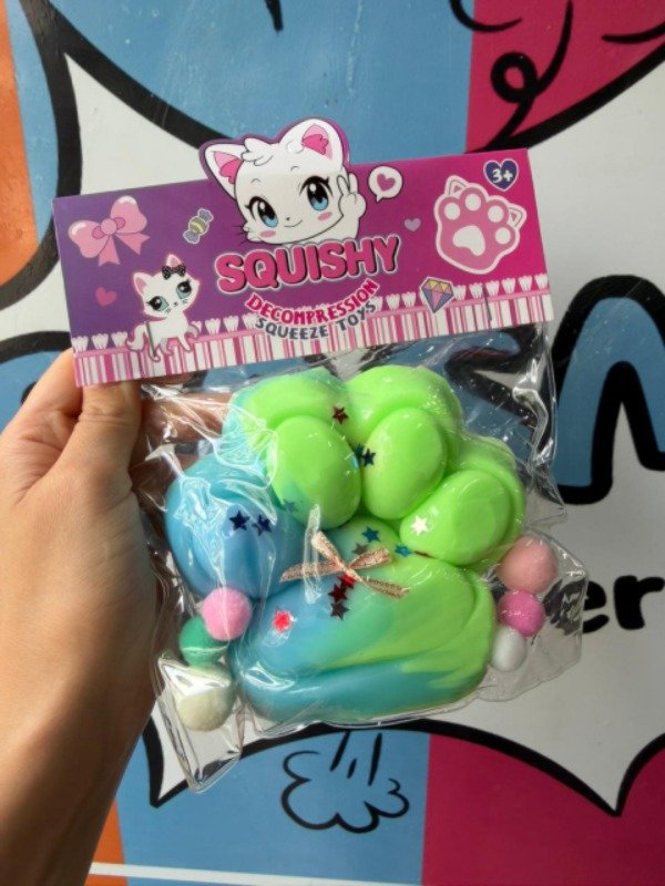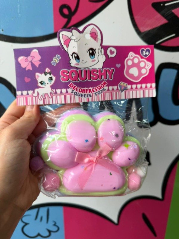 • Las bolsitas incluyen un Squishy con forma a Huella de Gatito y decoraciones.