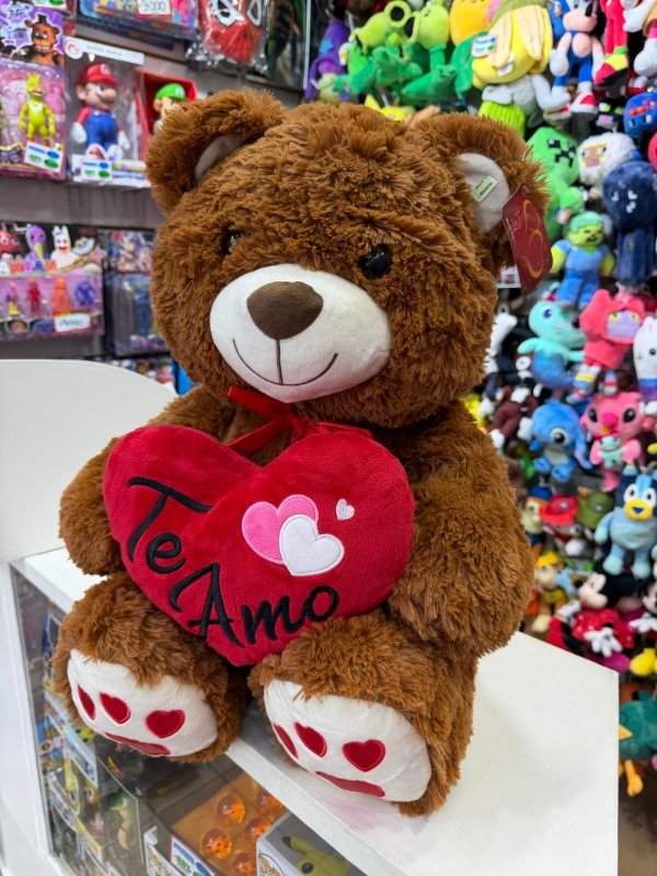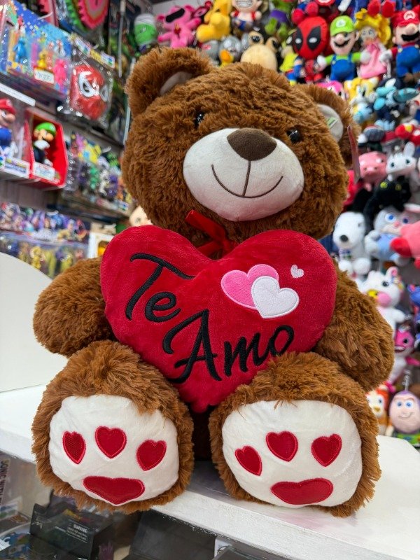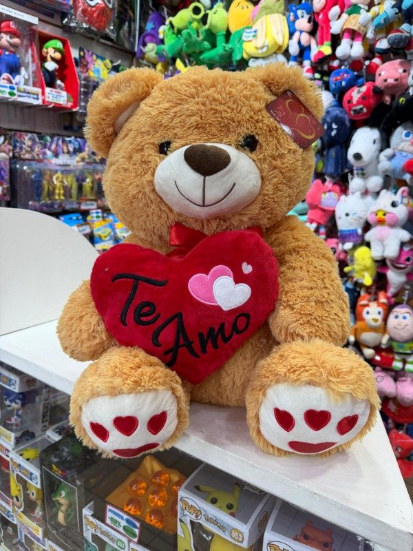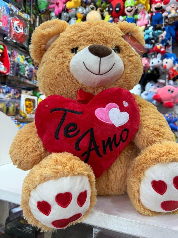 Ositos de peluche con textura suave y peludita. Tienen un corazón con la frase "te amo" bordada y dos corazones que la acompañan.