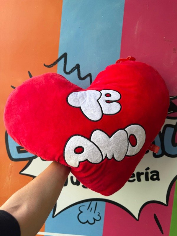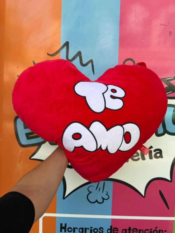 Corazón de peluche con la frase "te amo" bordada para mostrar todo lo que sentis 🩷