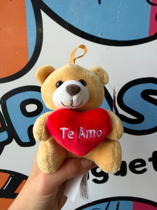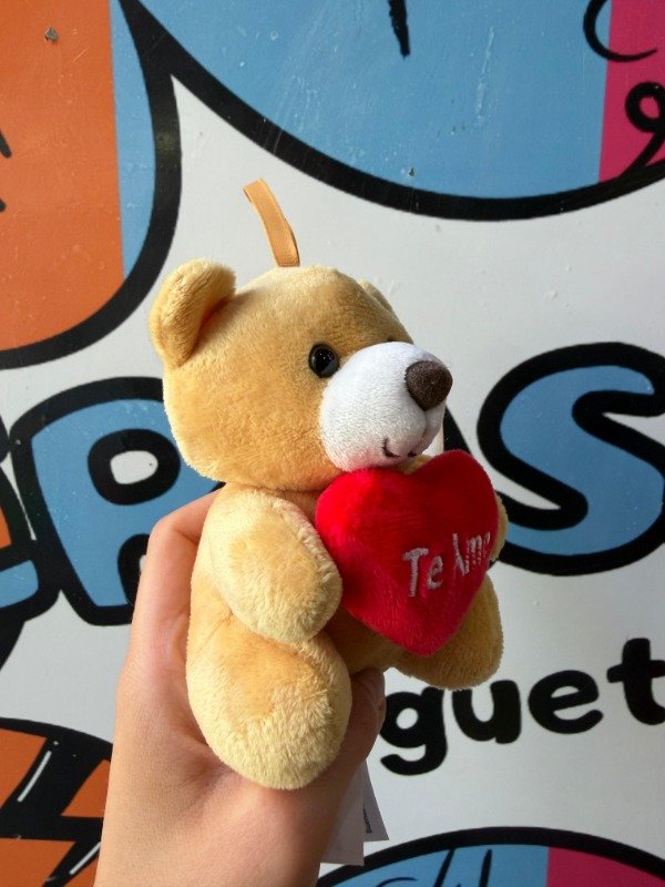 Osito de peluche pequeño, de textura suave y con un corazón que tiene la frase "te amo" bordada😍
