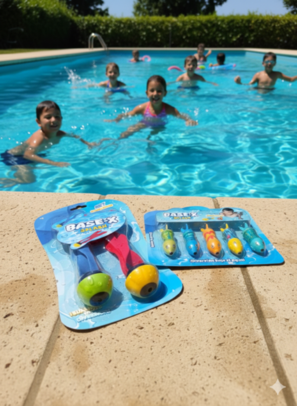 • Incluye 4 juguetes con forma de foca - torpedos que se hunden en el agua para divertirse buscándolos!